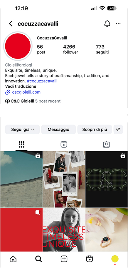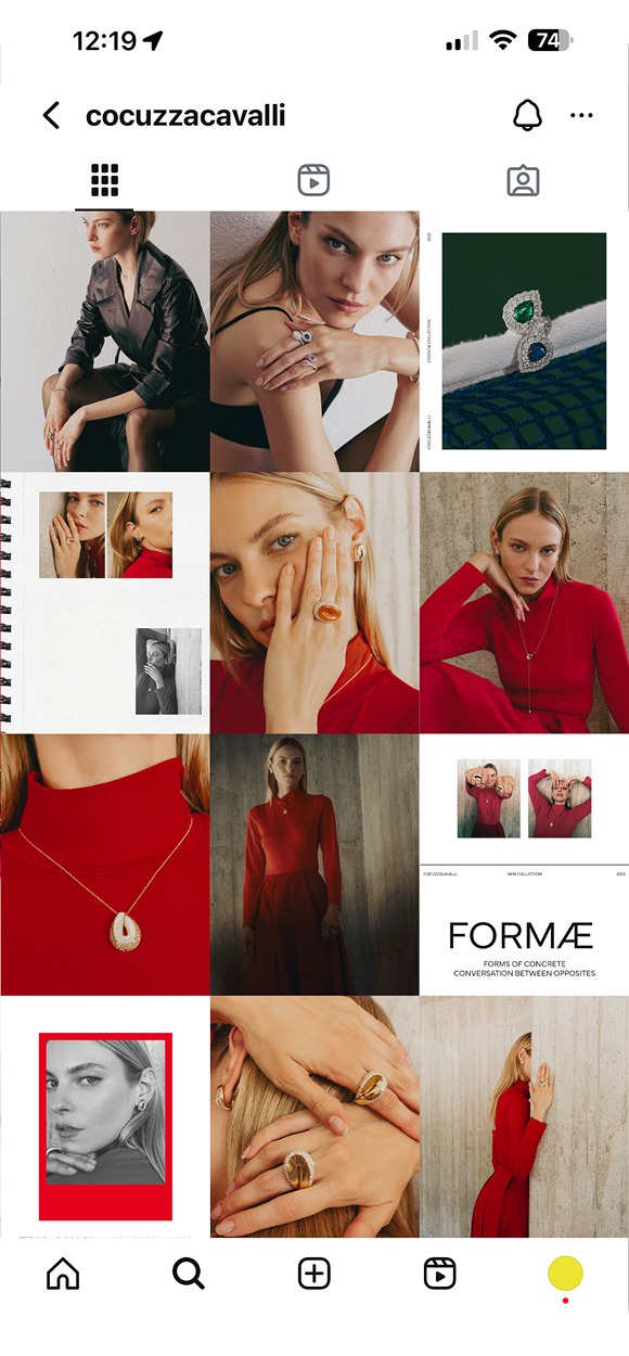 The entire brand identity was redefined, with a moodboard and storyboard guiding the production of premium content: from photography campaigns to a flagship institutional video nominated for the AME AWARD in New York, as well as videos highlighting craftsmanship and the launch of the new collection presented at VicenzaOro 2025.